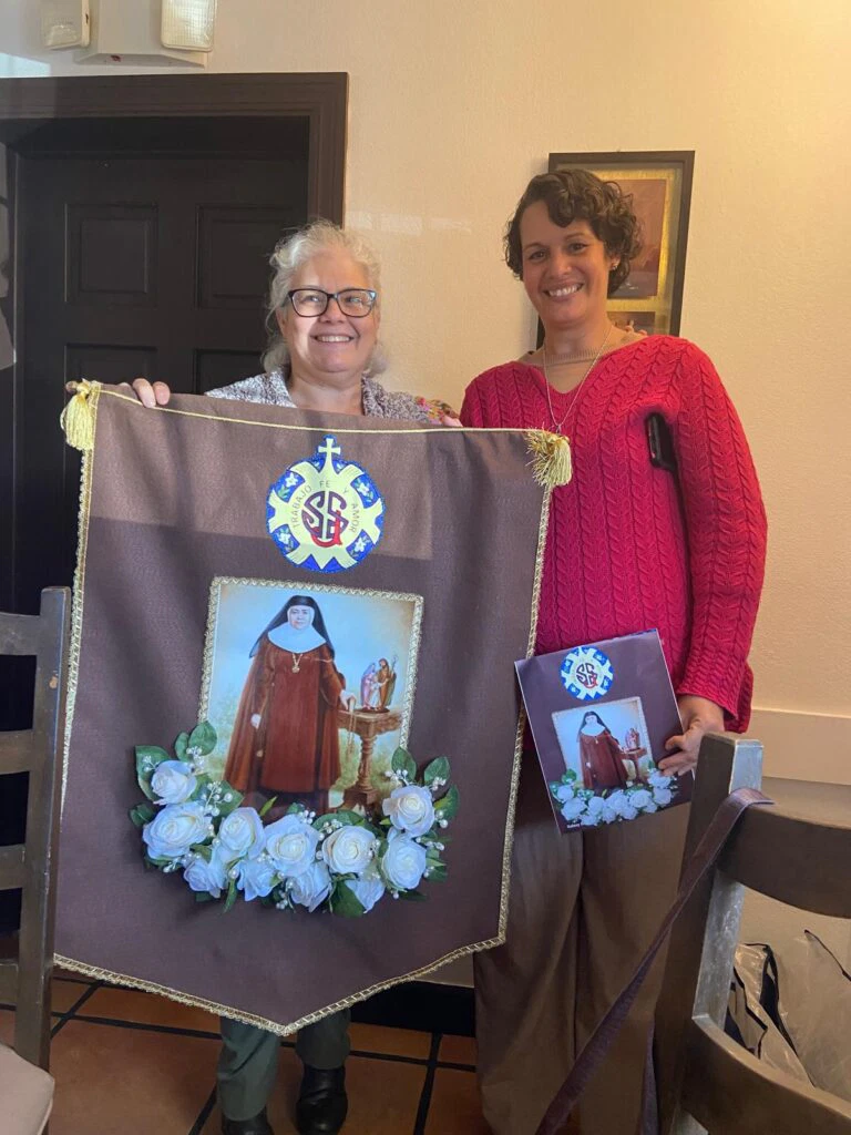 Iniciando el encuentro, Margarita Trujillo, coordinadora del grupo hizo entrega a las Hermanas del cuadro y estandarte dedicados a Santa Bonifacia creados por Dulce María Rodríguez, una de las exalumnas. En este año del centenario de la presencia en Cuba, han querido entregarlos a las Siervas, como signo de comunión y pertenencia a esta familia carismática.